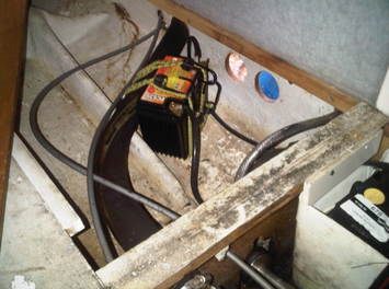 Batteries in small craft are always a difficult subject to get a good balance of installation and ventilation with good access, tidy, secure and safe. Recently on a 27 foot yacht I found this terrible example of how some owners totally disregard their own and others safety with an almost non existent installation! Firstly the battery was cable tied to the rubber exhaust, in its self the owner was lucky the PVC ties had not cut through the exhaust. Secondly and more importantly the exhaust gets very warm, the battery is sealed and presents quite an explosive risk! There are quite a few other things that could be noted, have a good look! Just think! Check out your installation. Remember the basics, secure, vented and tidy with no chance of shorting or warming! That would be a good start.